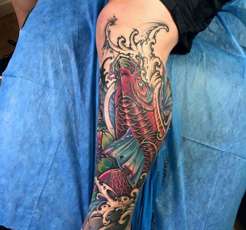 • T网红王老大花腿龙纹身图片_腿部新传统纹身图案