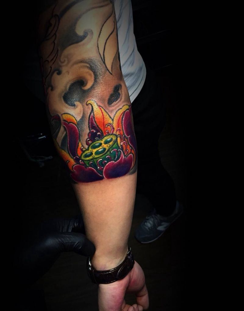 当前位置: 首页 >北京市纹身店-北京浪川刺青纹身图案>七分袖 莲花纹身图片_
