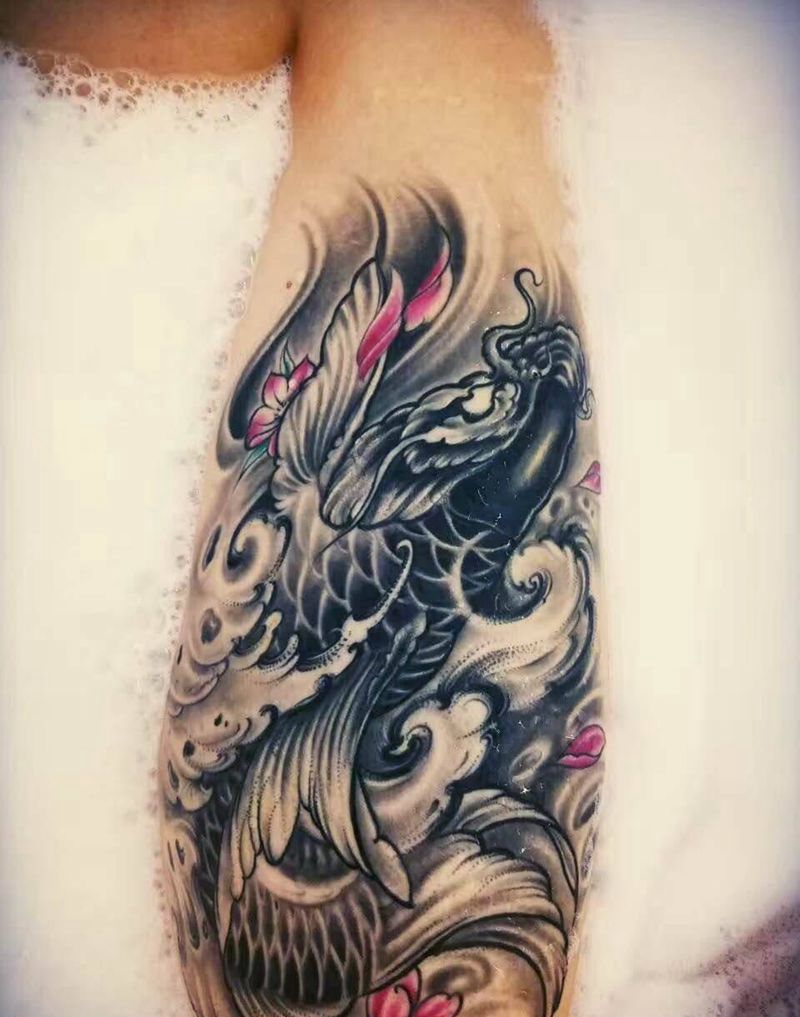 当前位置: 首页 >北京市纹身店-北京浪川刺青纹身图案>黑白 鲤鱼纹身图片_