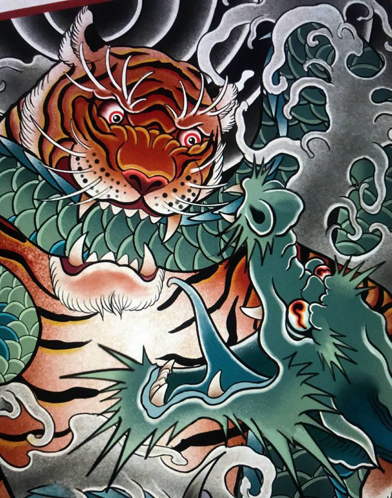 龙虎斗纹身图片_背部纹身图案