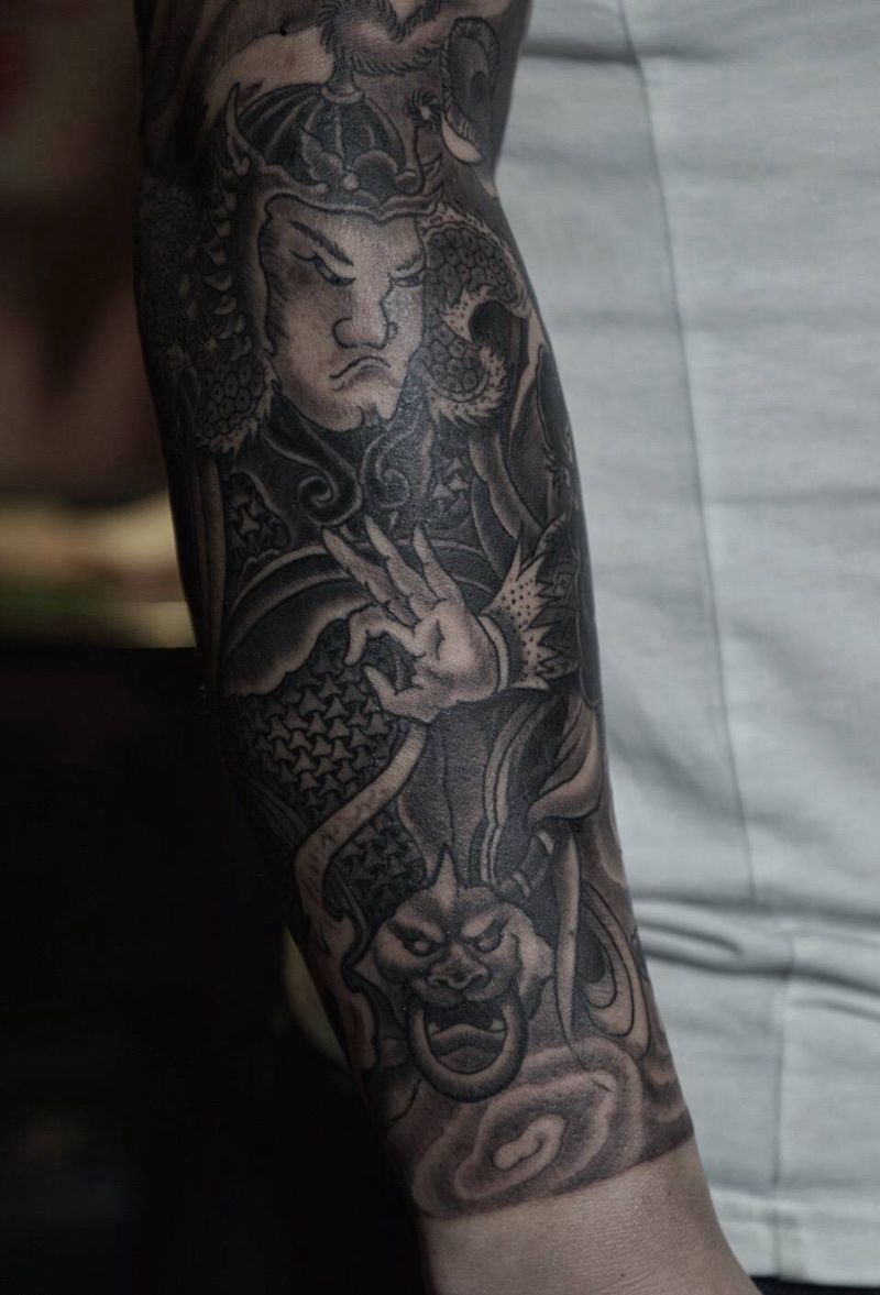 黑灰满背纹身图案