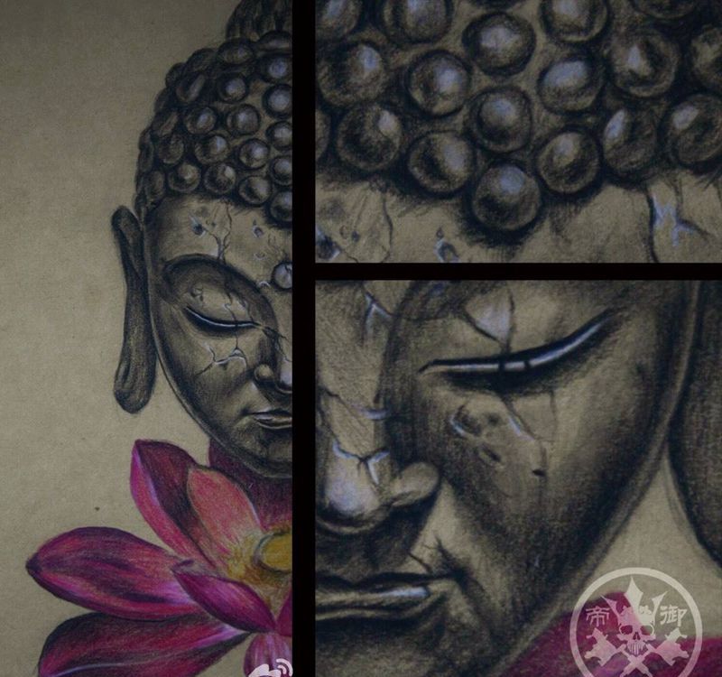 《佛语莲》纹身图片_成品手臂传统写实肖像国画宗教纹身图案