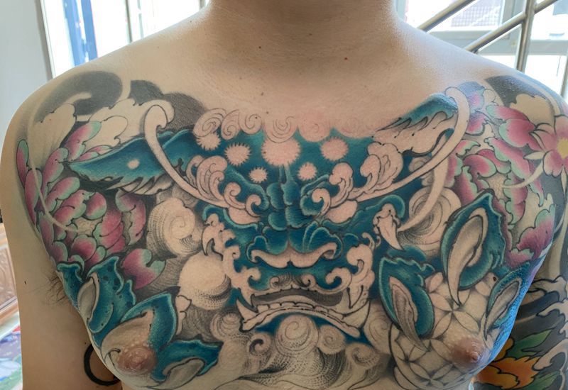 当前位置: 首页 >北京市纹身店-秦TATTOO纹身图案>花胸唐狮彩色纹身图片_胸部纹身图案