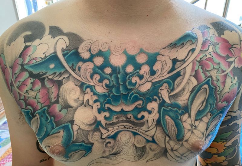 当前位置: 首页 >北京市纹身店-秦TATTOO纹身图案>花胸唐狮彩色纹身图片_胸部纹身图案