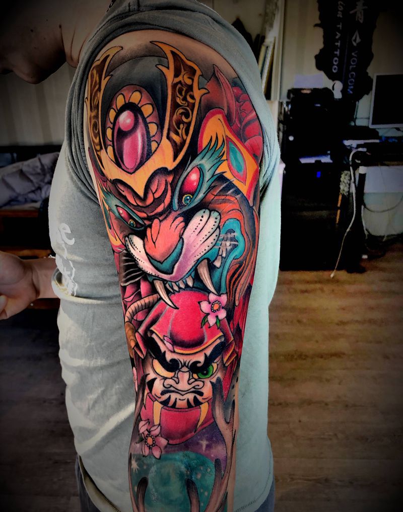 当前位置: 首页 >北京市纹身店-秦TATTOO纹身图案>鹿虎new school路虎纹身图片_手臂New School新传统纹身图案