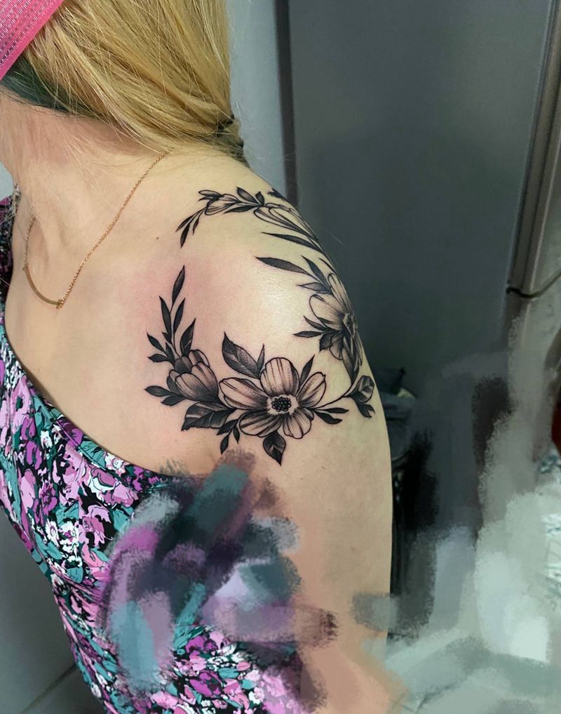 肩花纹身图片_肩部纹身图案
