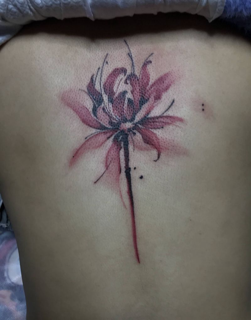 彼岸花纹身图片_背部水墨水彩纹身图案