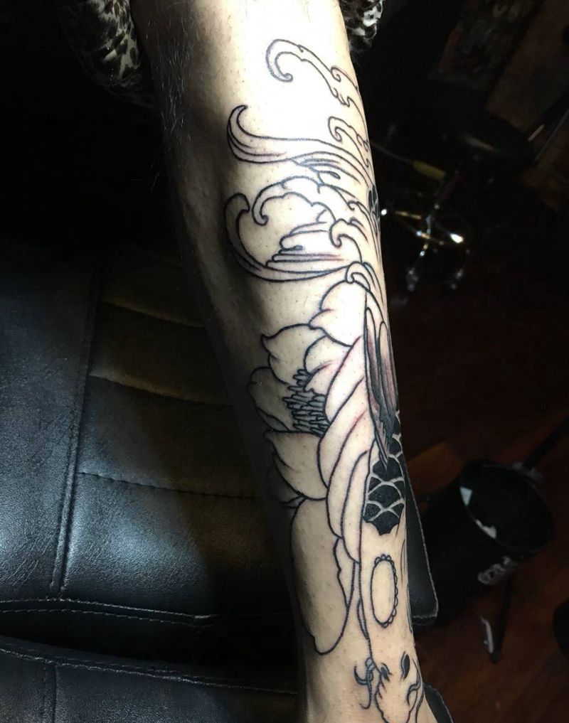 • T网红王老大花腿龙纹身图片_腿部新传统纹身图案
