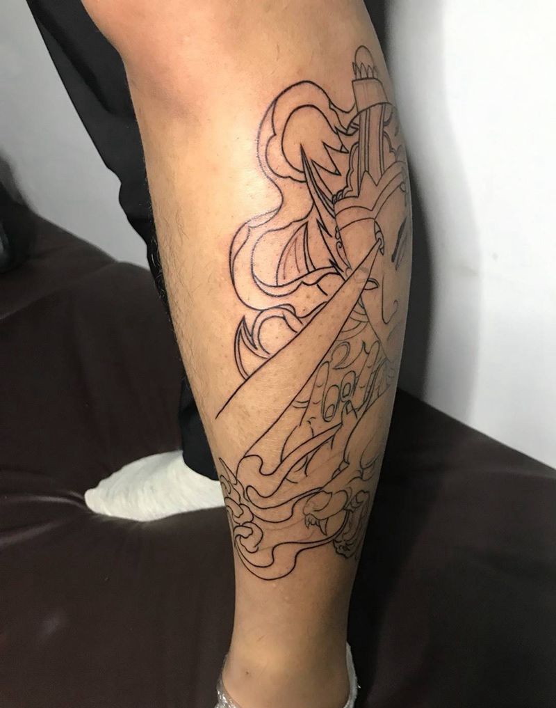 • T网红王老大花腿龙纹身图片_腿部新传统纹身图案