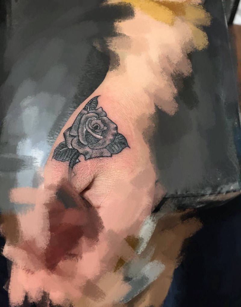• 手背潮流时尚的玫瑰花眼睛纹身图案