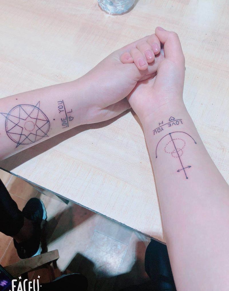 当前位置: 首页 >北京市纹身店-枨泽文身纹身图案>有情人终成眷属纹身图片_手臂几何纹身图案