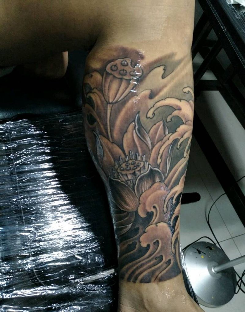 • T网红王老大花腿龙纹身图片_腿部新传统纹身图案