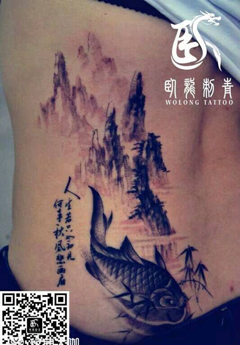 当前位置: 首页 >北京市纹身店-卧龙刺青纹身图案>山水鲤鱼纹身纹身图片_