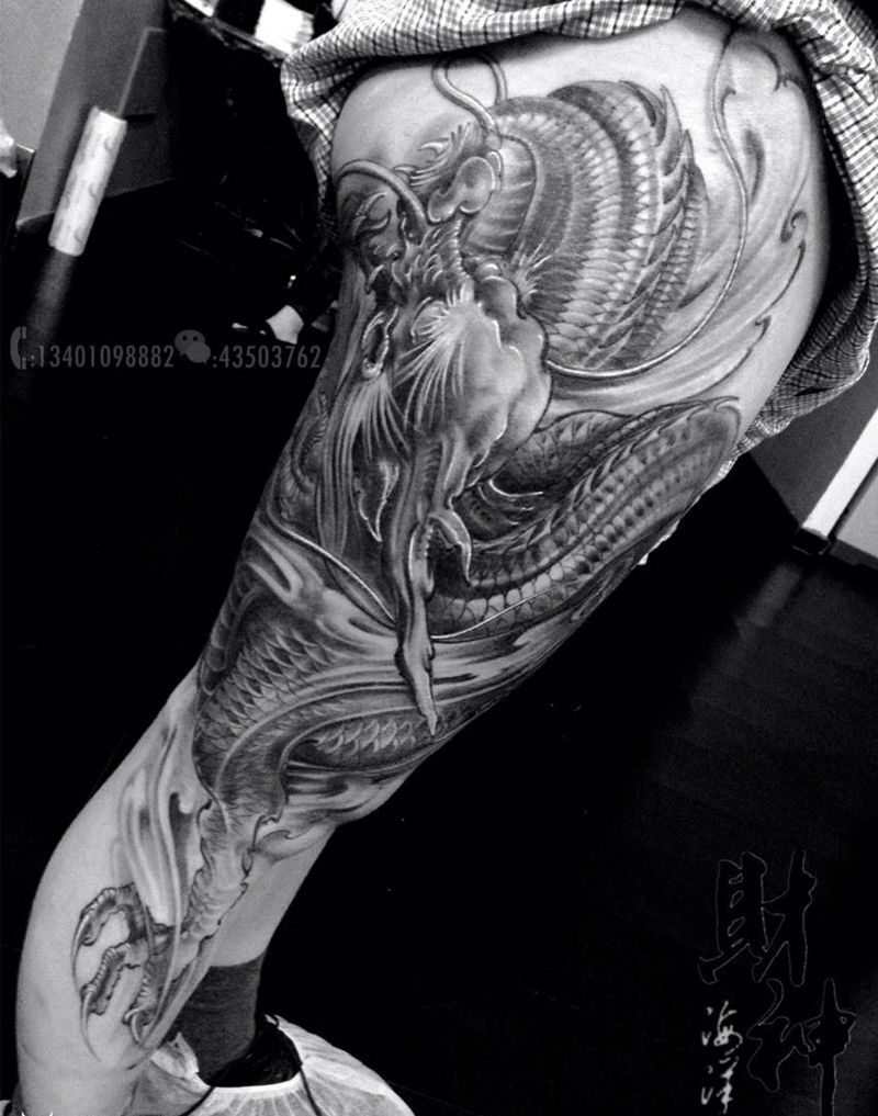 龙呀纹身图片_成品原创传统腿部纹身图案