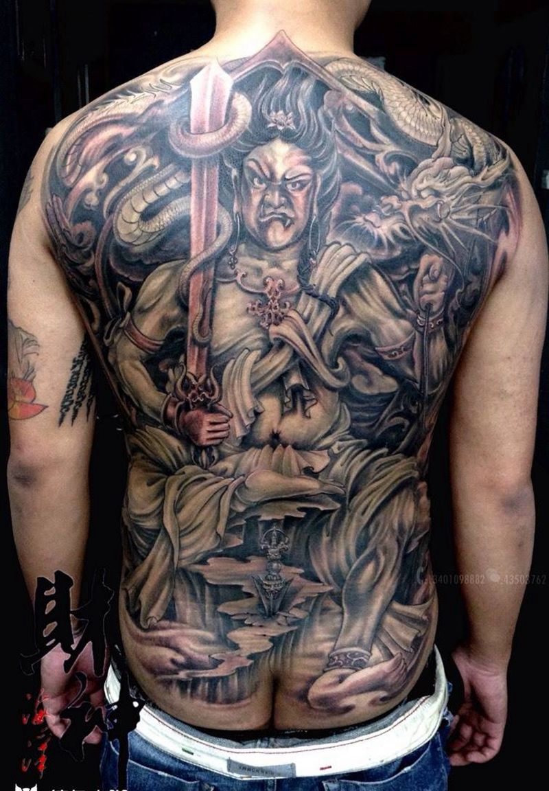 不动纹身图片_成品传统背部人物鬼神宗教纹身图案