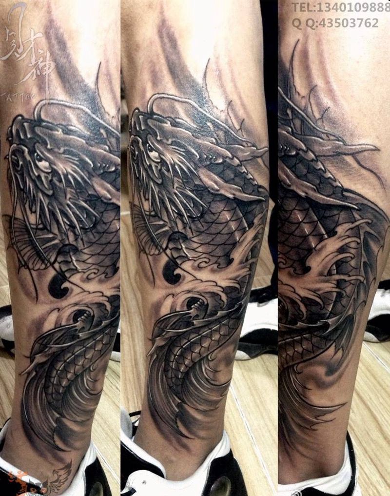 • T网红王老大花腿龙纹身图片_腿部新传统纹身图案