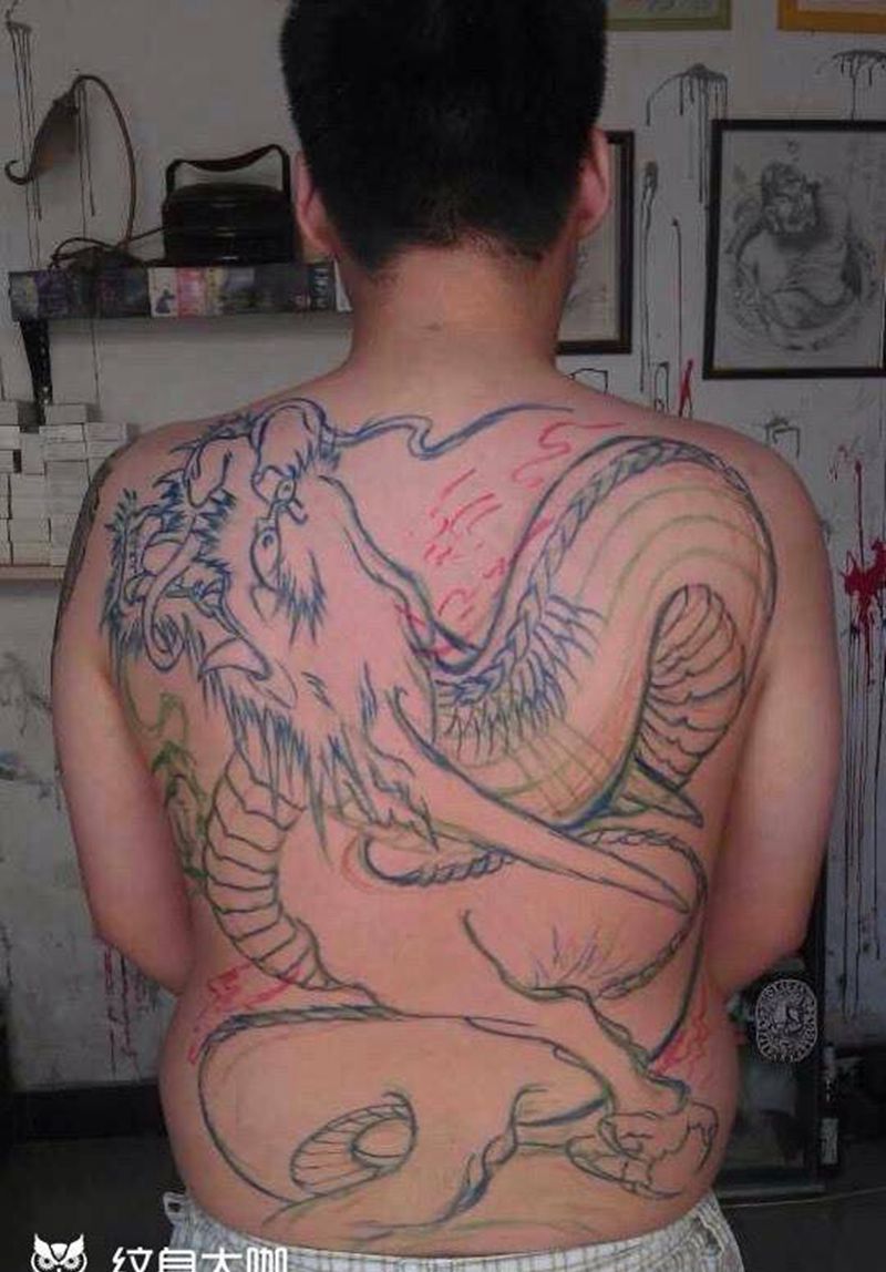 黑灰满背纹身图案