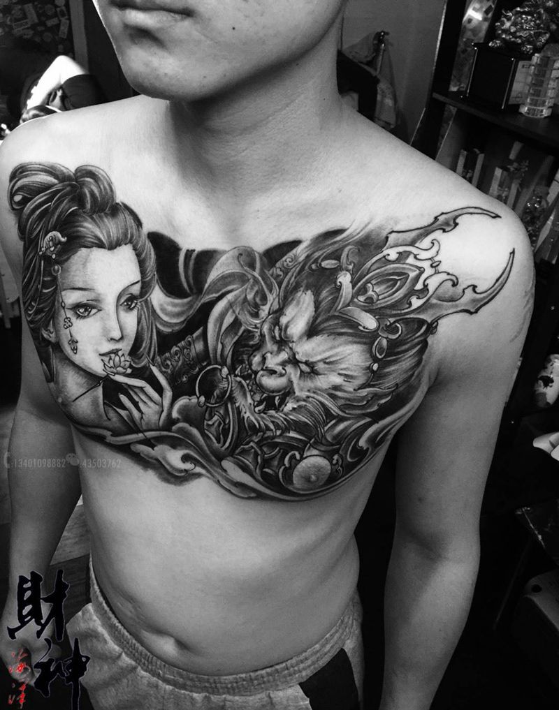 • 男性大花胸_42张优秀的男性大花胸纹身图案图片