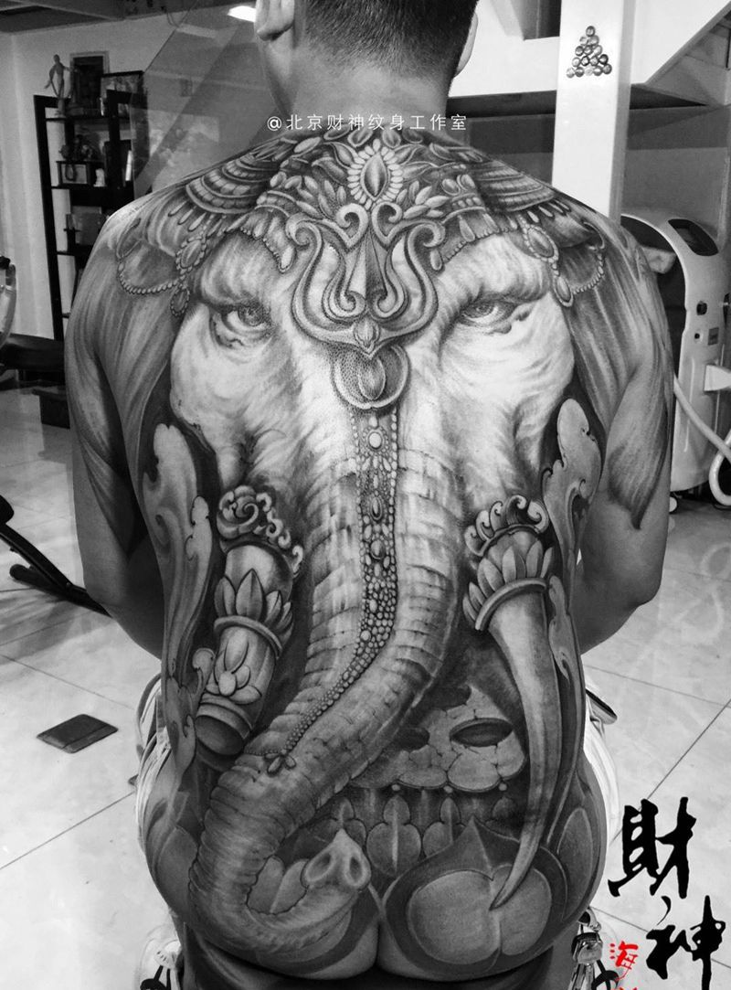 当前位置: 首页 >北京市纹身店-北京财神纹身工作室纹身图案>大象纹身图片_传统背部成品纹身图案