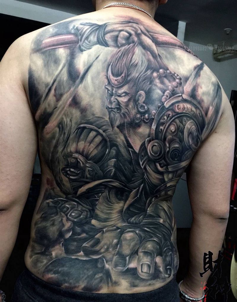 妖猴出世】纹身图片_成品背部传统写实欧美人物鬼神原创纹身图案
