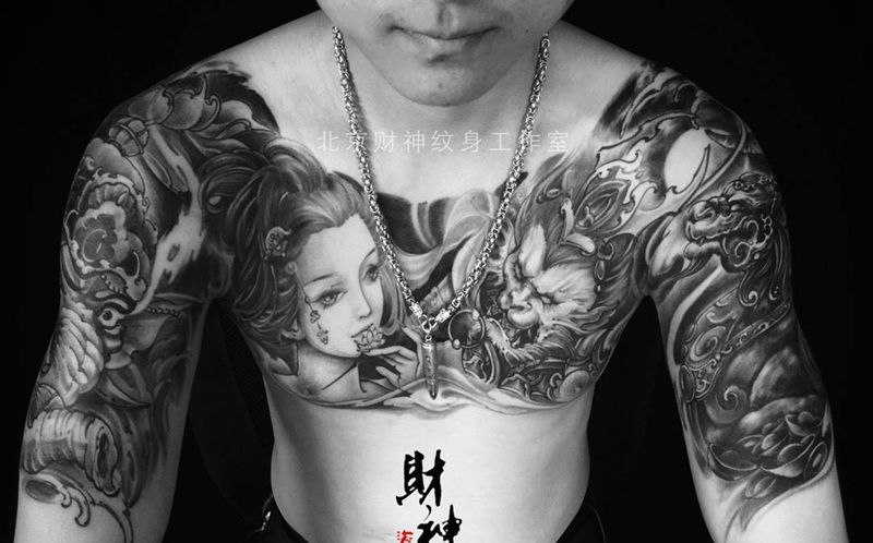 当前位置: 首页 >北京市纹身店-北京财神纹身工作室纹身图案>花胸纹身图片_成品传统原创人物鬼神习俗手臂胸部肩部纹身图案