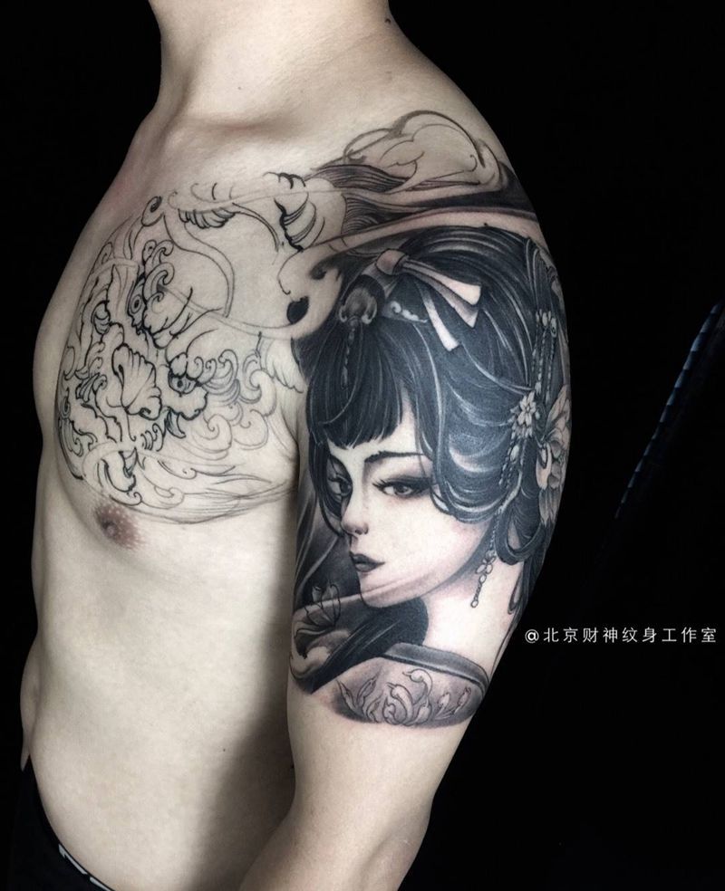 • 纹身吧推荐的披肩图腾半胛纹身图案作品展示
