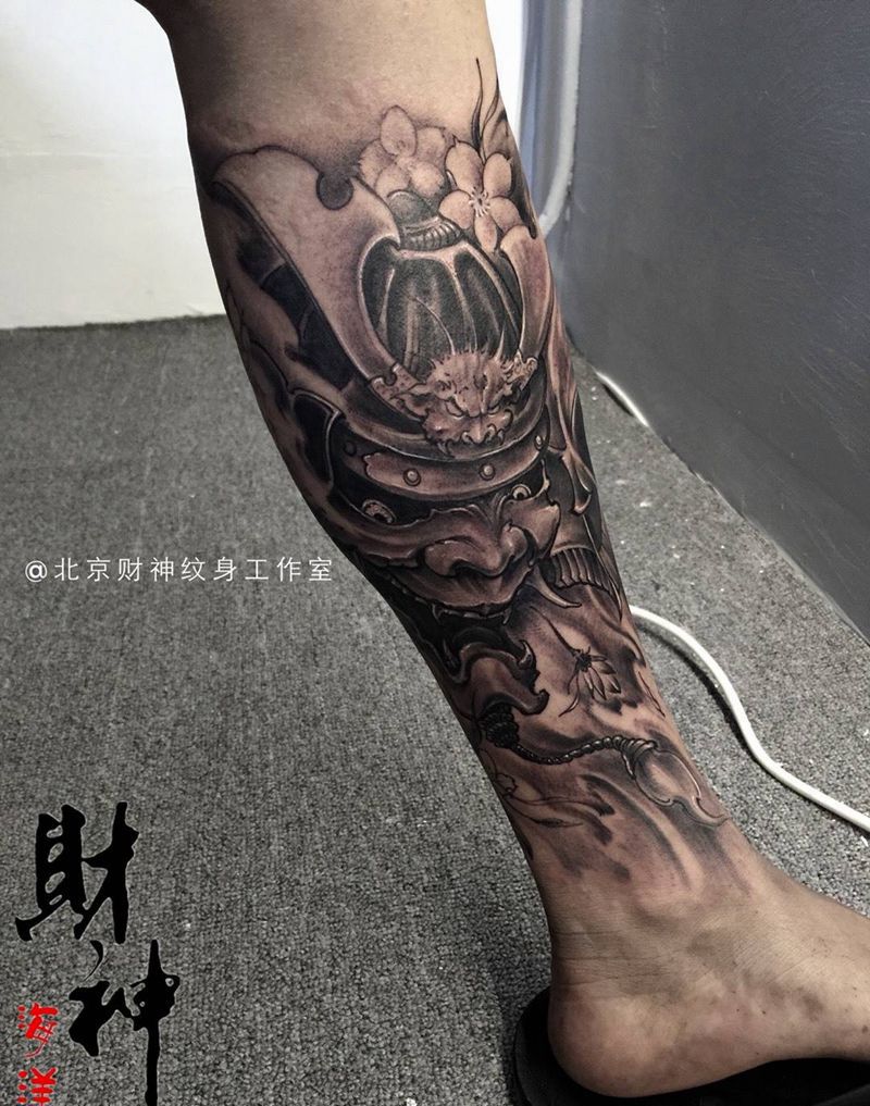 当前位置: 首页 >北京市纹身店-北京财神纹身工作室纹身图案>鬼武士纹身图片_传统成品人物鬼神腿部纹身图案