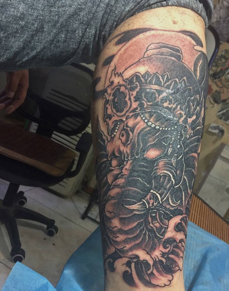 • T网红王老大花腿龙纹身图片_腿部新传统纹身图案