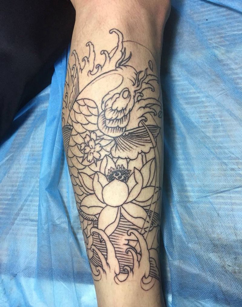 • T网红王老大花腿龙纹身图片_腿部新传统纹身图案