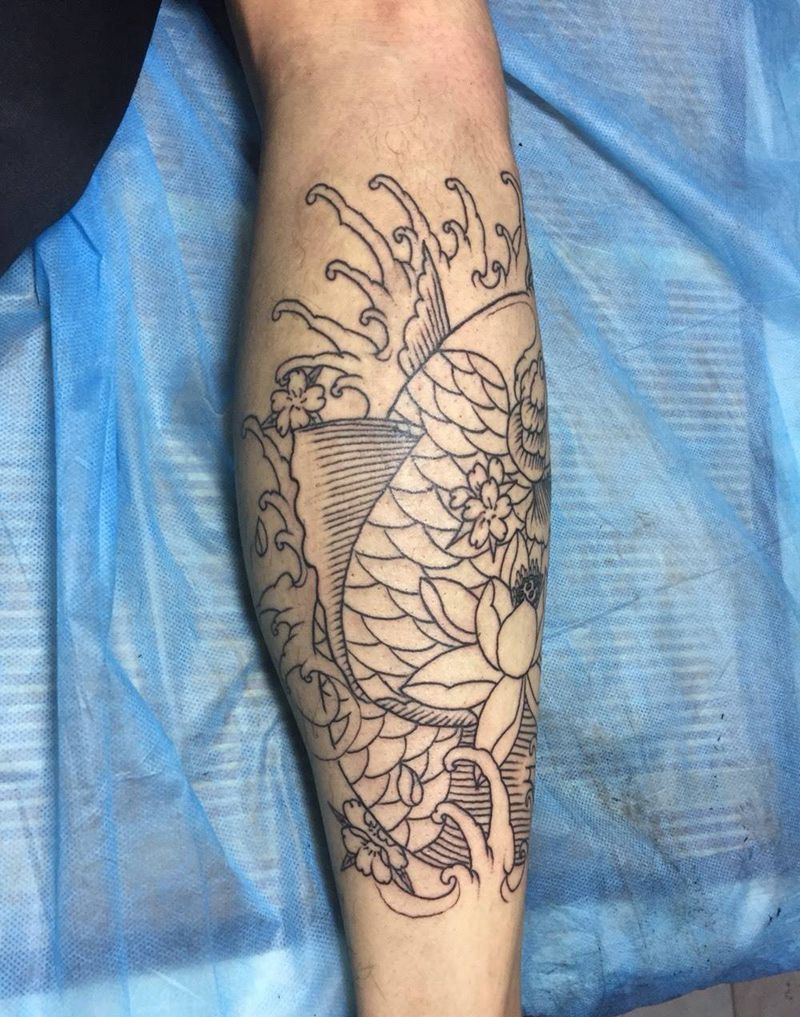 • T网红王老大花腿龙纹身图片_腿部新传统纹身图案