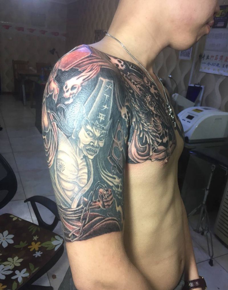 • H传统钟馗纹身 钟馗过肩纹身图案