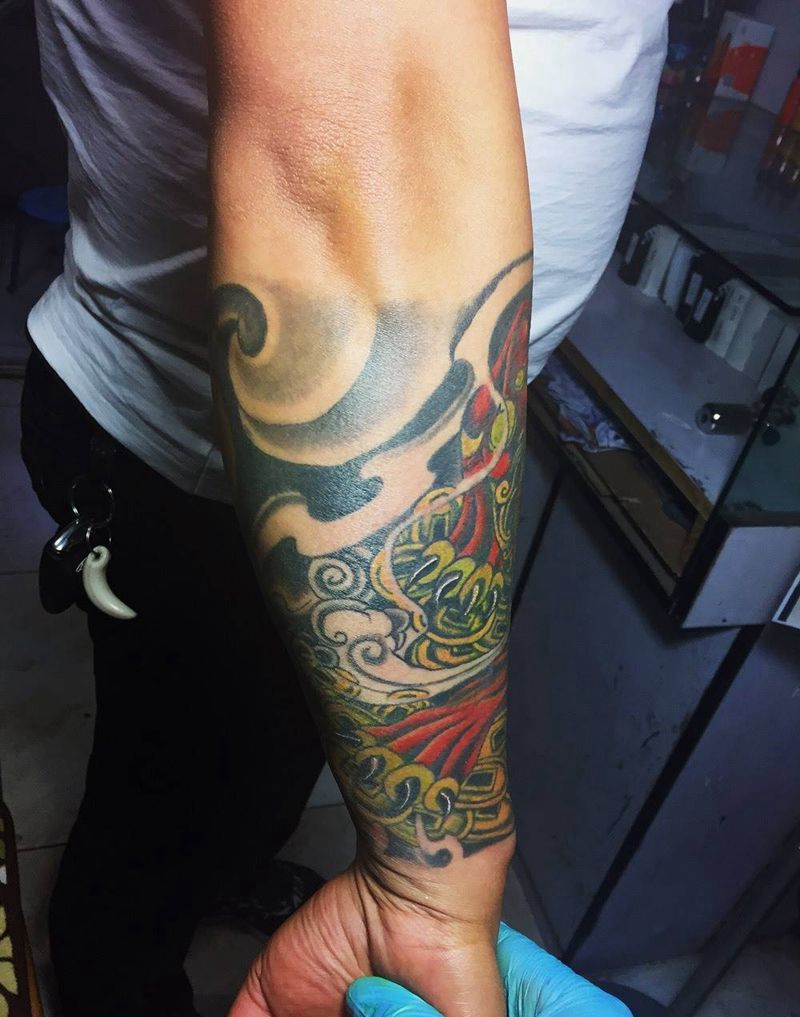 当前位置: 首页 >北京市纹身店-北京白虎堂-刺青纹身图案>“貔貅 如意”包小臂纹身图片_