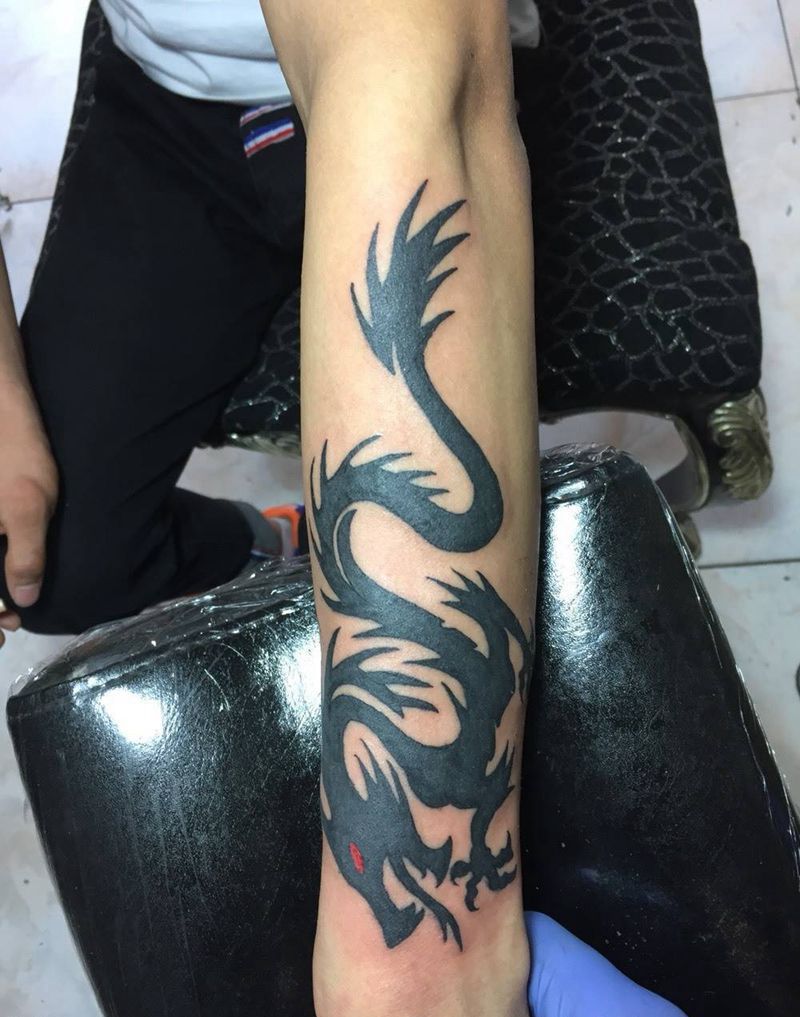 • T网红王老大花腿龙纹身图片_腿部新传统纹身图案
