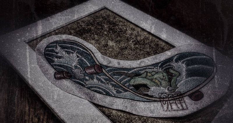 般若元素滑板纹身图片_手臂New School点刺原创纹身图案