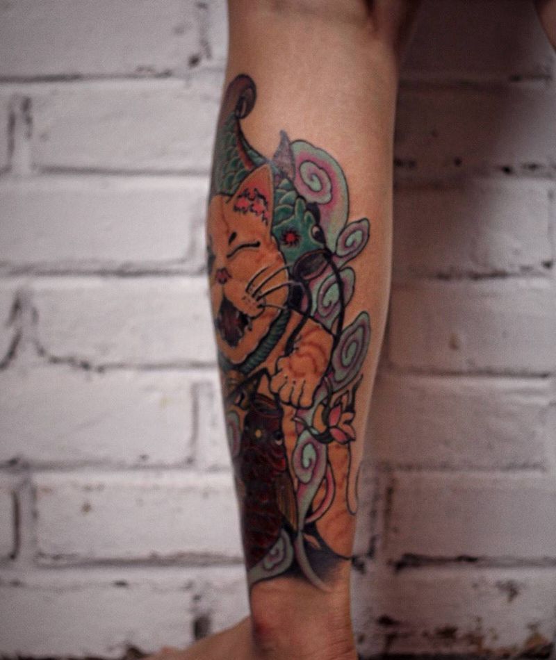 • T网红王老大花腿龙纹身图片_腿部新传统纹身图案