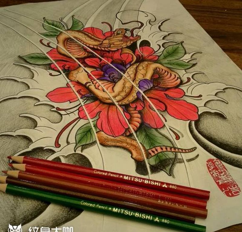 一组15张莲花纹身手
