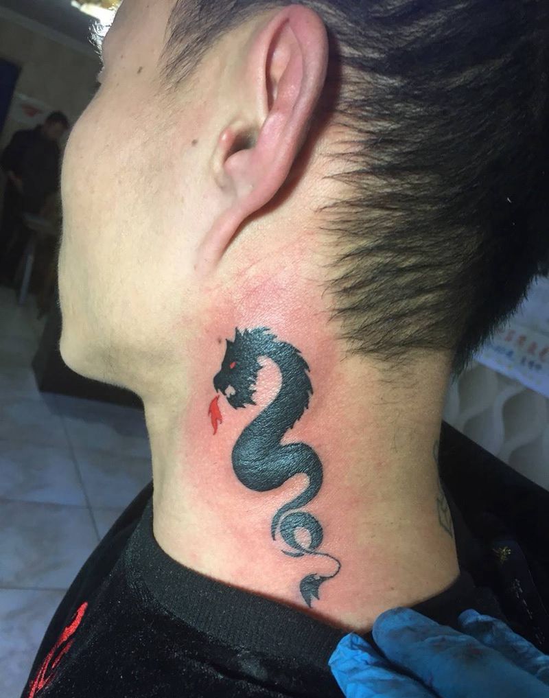 • T网红王老大花腿龙纹身图片_腿部新传统纹身图案