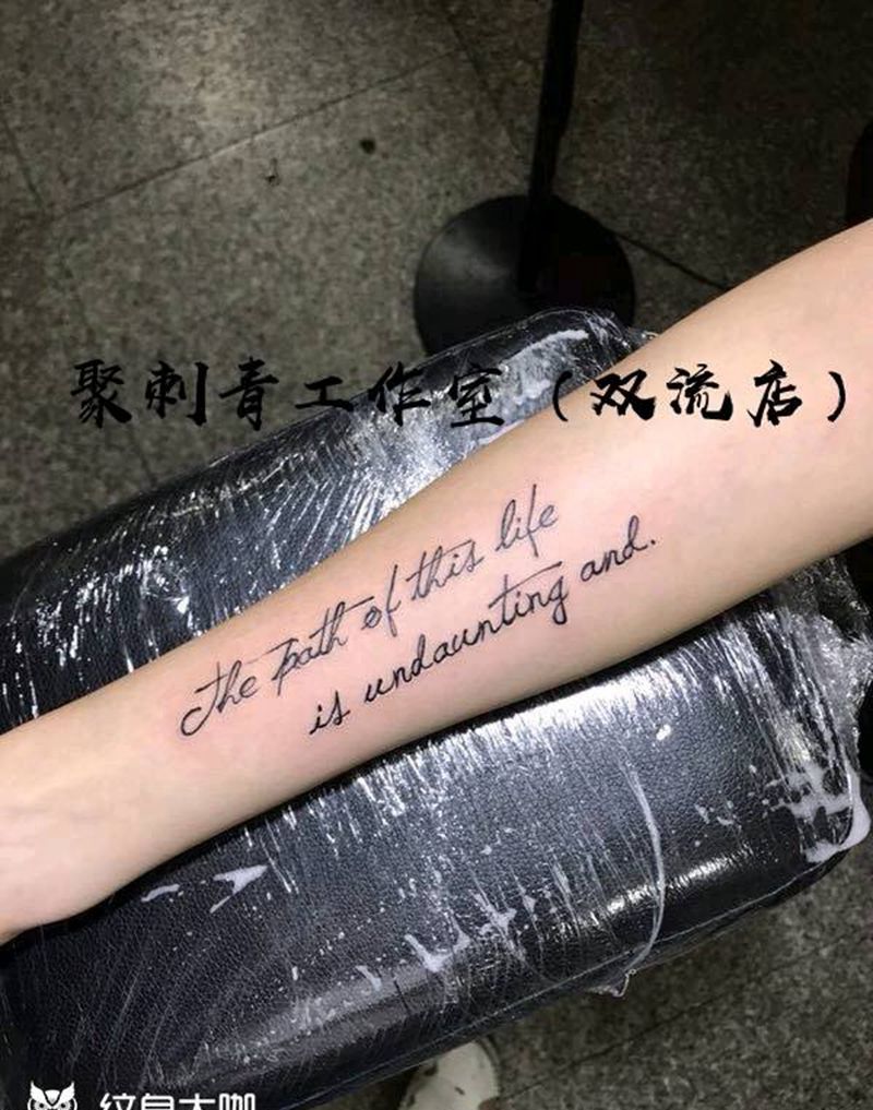 我的作品纹身图片_腹部手臂水墨花体字纹身图案