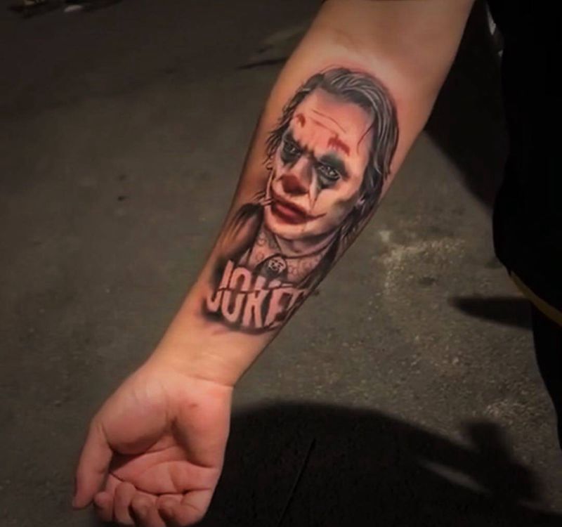 小丑纹身图片_手臂欧美写实纹身图案