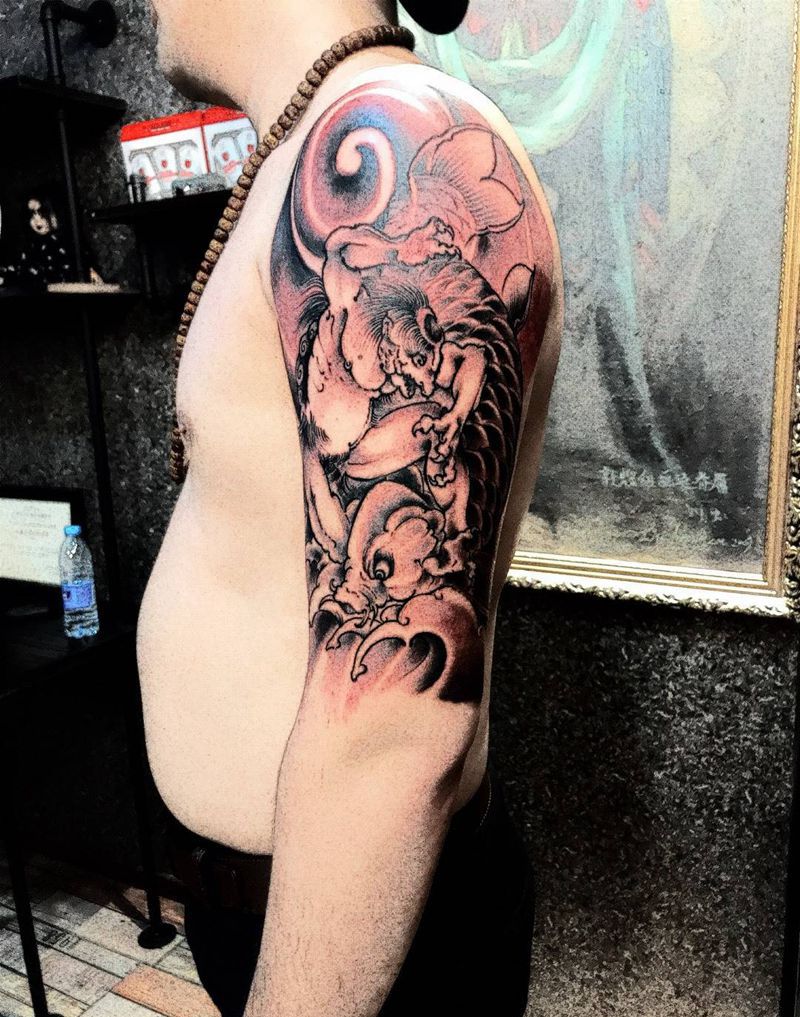 当前位置: 首页 >北京市纹身店-阿航刺青纹身图案>河童杀鱼纹身图片_