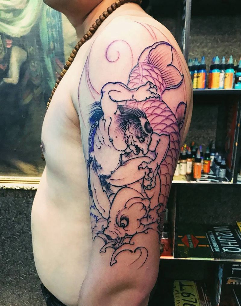 河童杀鱼纹身图片_