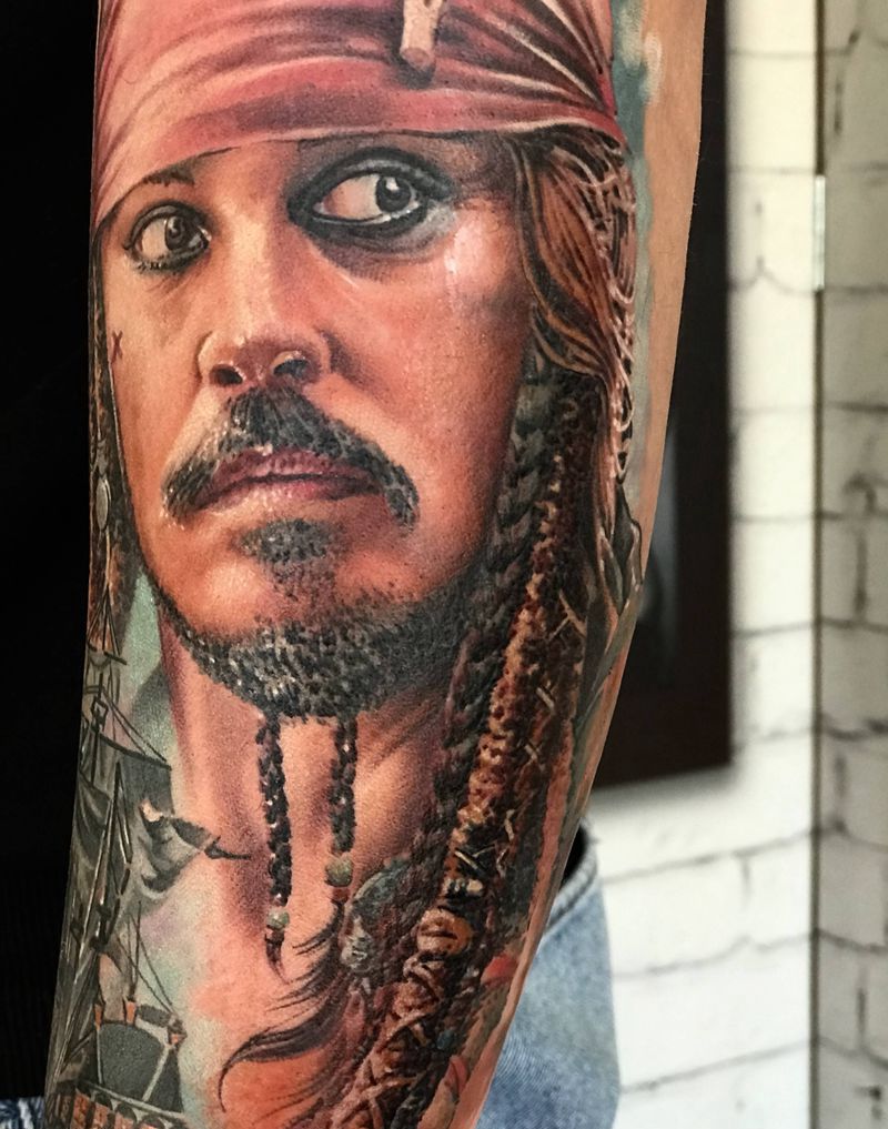 加勒比海盗纹身图片_手臂欧美写实纹身图案