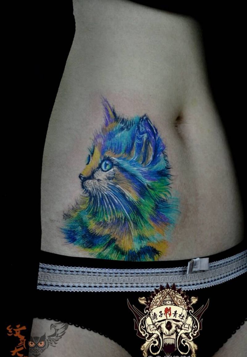 当前位置: 首页 >北京市纹身店-北京涛子刺青社纹身图案>猫纹身图片_腹部欧美动物纹身图案
