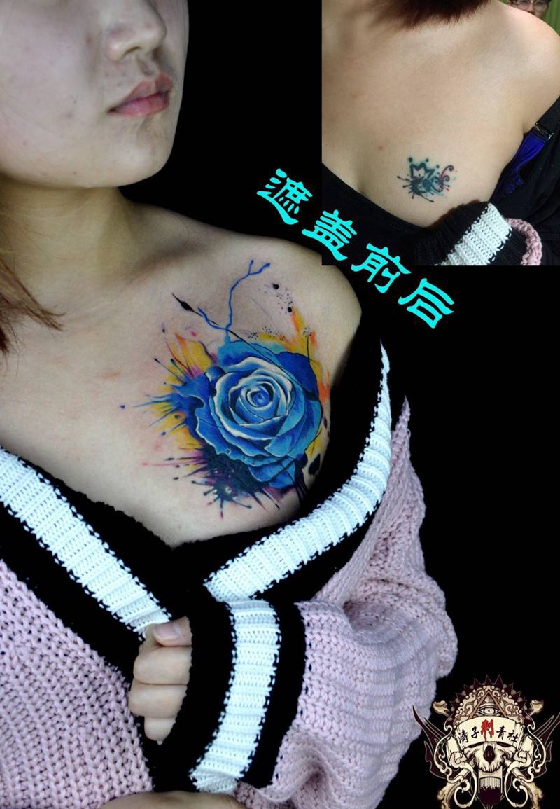 • 女性大花胸纹身_43张霸气漂亮的女性大花胸纹身图案作品