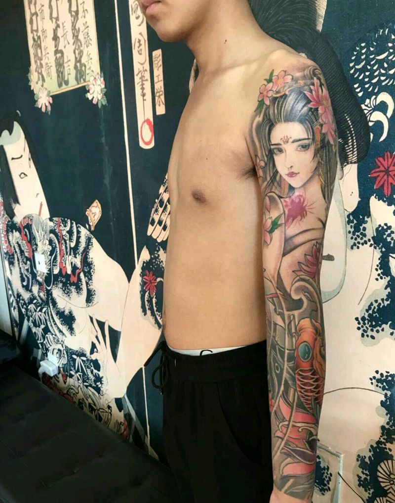 当前位置: 首页 >北京市纹身店-皓刺青纹身图案>彩色花臂纹身图片_手臂新传统鱼 艺姬纹身图案
