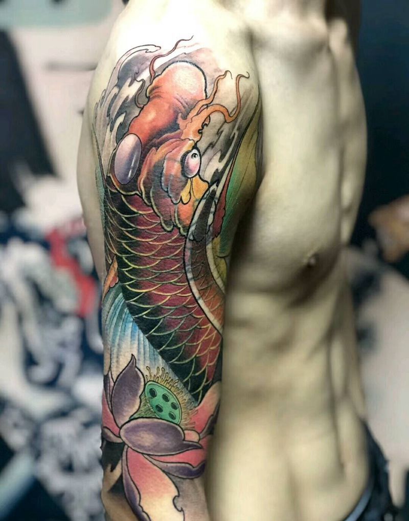 锦鲤 遮盖纹身图片_肩部手臂老传统鱼纹身图案