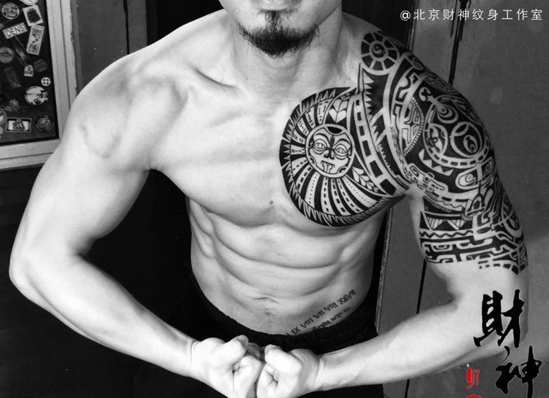 当前位置: 首页 >北京市纹身店-财神纹身工作室纹身图案>强森纹身图片_成品肩部胸部传统字符图腾纹身图案
