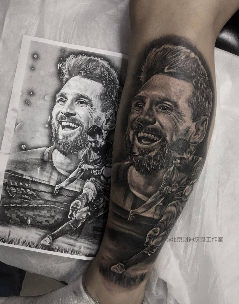 当前位置: 首页 >北京市纹身店-财神纹身工作室纹身图案>梅西纹身图片_成品腿部欧美写实人物纹身图案