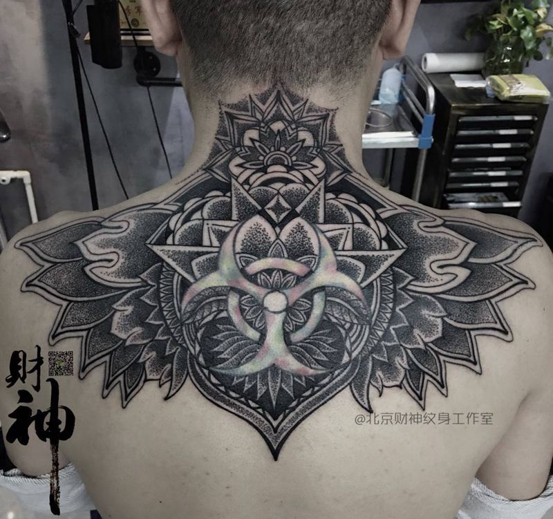 当前位置: 首页 >北京市纹身店-财神纹身工作室纹身图案>铠甲纹身图片_成品背部肩部习俗几何纹身图案