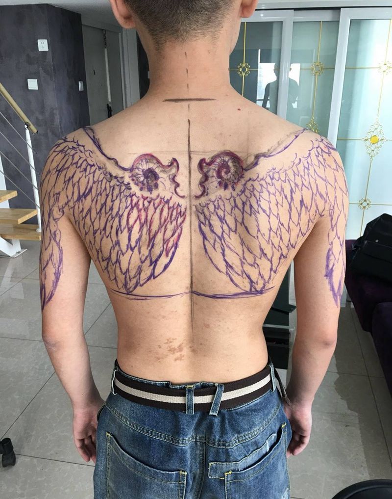 天使之翼纹身图片_成品背部欧美纹身图案